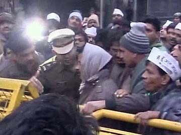 Yesterday, in what led to a day-long war of nerves, the Delhi Police stopped Mr Kejriwal from proceeding to union Home Minister Sushil Kumar Shinde's office in the North Block to protest. Mr Kejriwal and his ministers then decided to launch their protest at the spot where they had been stopped - outside Rail Bhavan near India Gate.